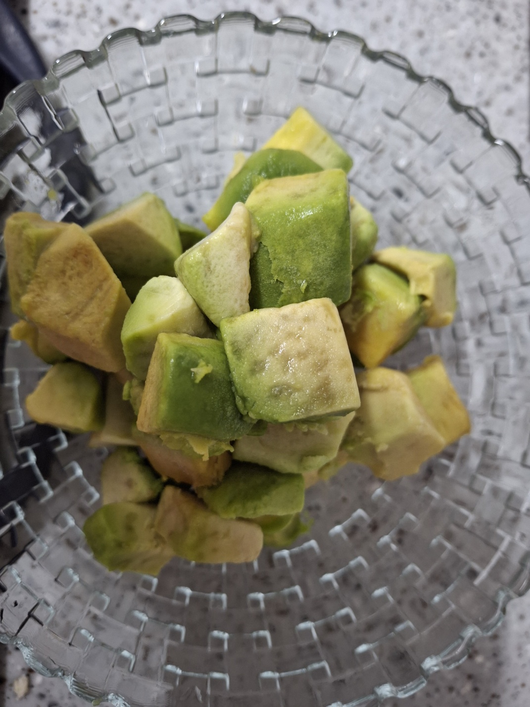 냉동된 아보카드가 조금 녹으면 쉽게 으깨집니다