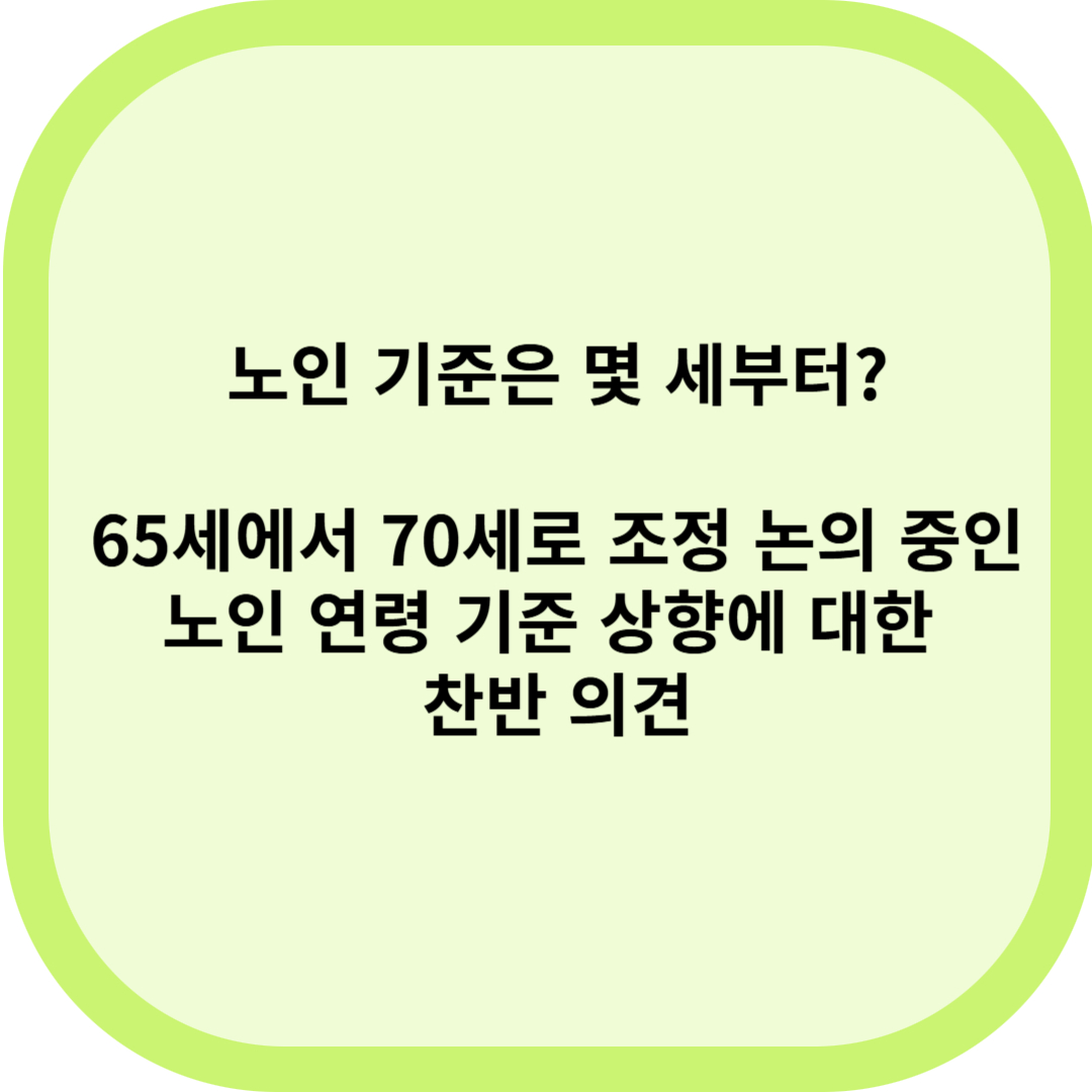 찬성 측 | - 시대 변화에 맞춰 노인 기준을 조정해야 함 - 복지 부담 감소 및 젊은 세대 부담 완화 - 건강한 고령자들에게 더 많은 기회 제공 가능 |