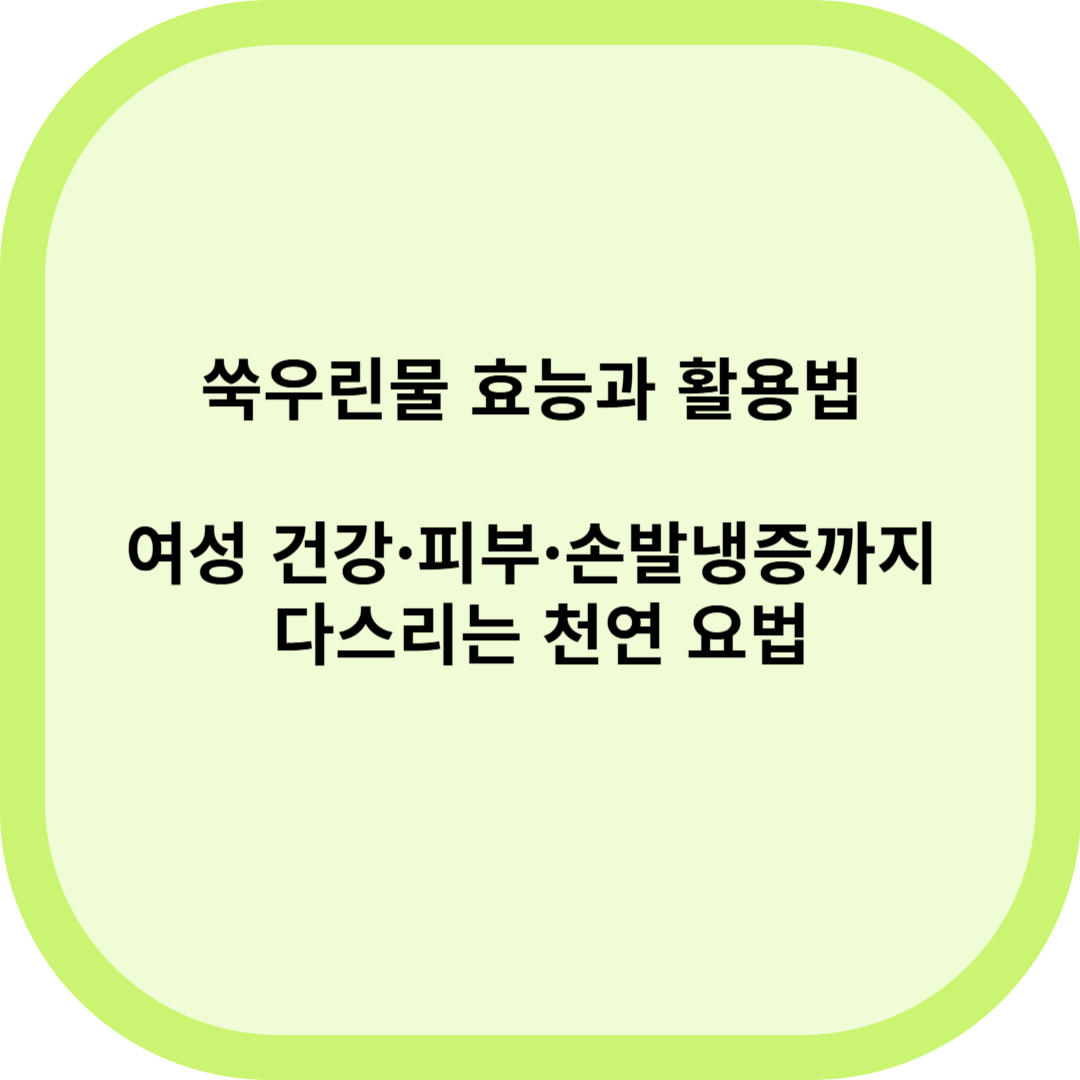 쑥우린물은 항염·면역력 강화는 물론 여성 질 건강, 피부 트러블 완화, 손발냉증 개선 등 다양한 효능을 지닌 자연 요법입니다. 좌욕, 족욕, 세정 등 실제 활용법과 주의사항, FAQ까지 정리해드립니다.