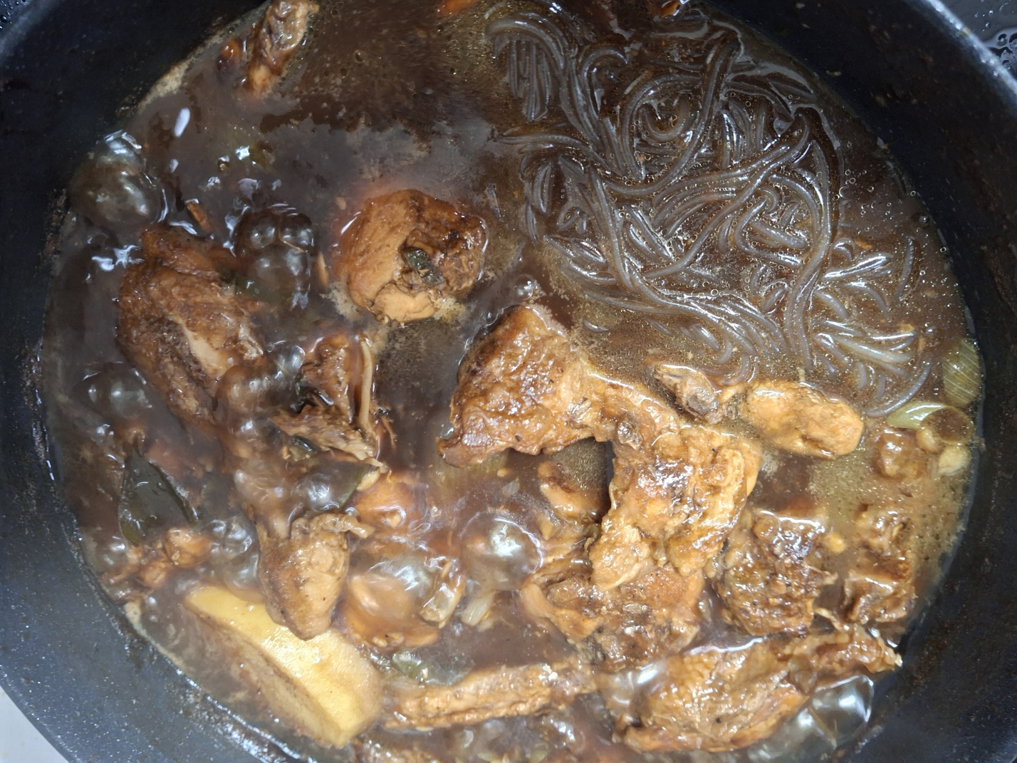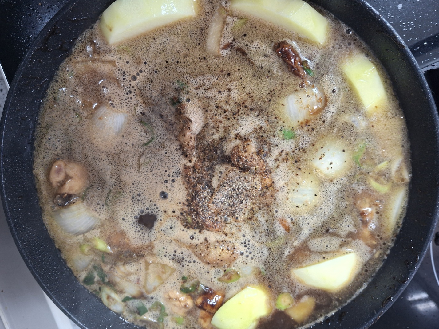 뚜껑을 열고 강불에서 5분정도 졸여줍니다. 한쪽에 불린당면 넣으면 마무리. 이때 물이 부족하면 100ml 추가해주세요.