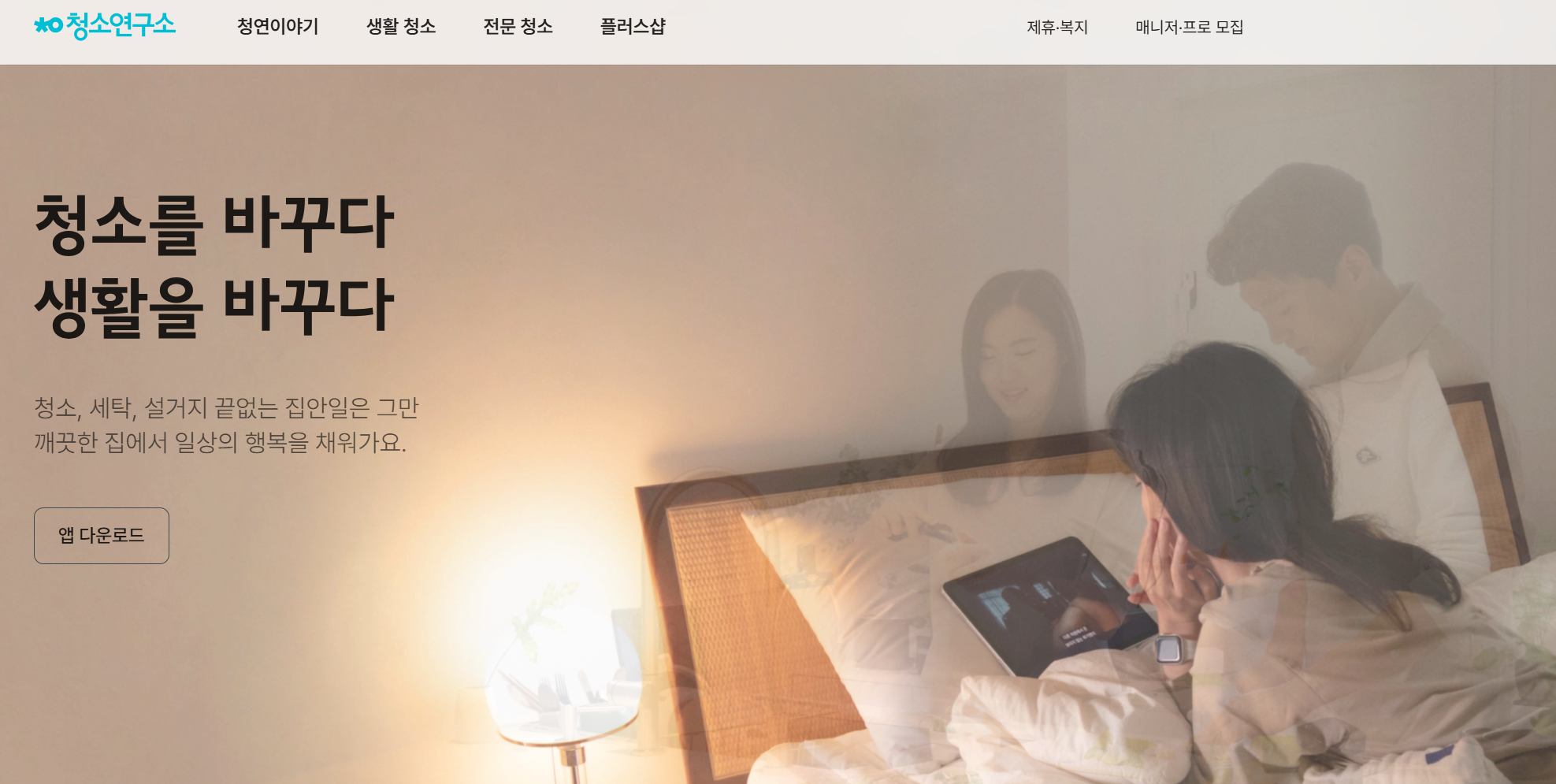 청소연구소 공식 앱을 통해 간편하게 예약하실 수 있습니다. 앱에서는 서비스 가능 지역 확인, 가격 조회, 예약 일정 선택 등이 가능합니다.