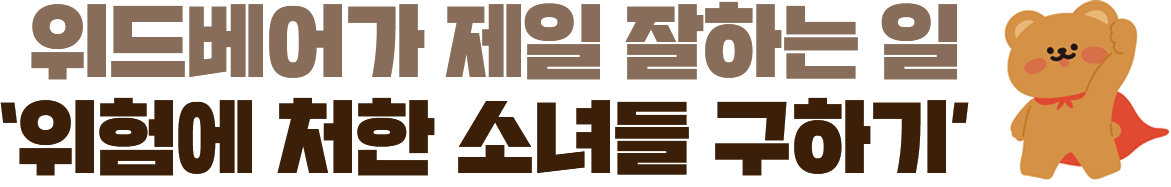 후원자님께서 위드베어 키링을 받으시면, 한 소녀를 후원하게 되며, 후원금은 여아 위생사업과 소녀가 사는 마을의 지역개발사업에 사용됩니다. 이를 통해 위생적인 여아 화장실 건설, 취업·창업 교육, 성교육 및 생리 관리 교육, 위기 상황 개입 등 다양한 지원이 이루어집니다.
