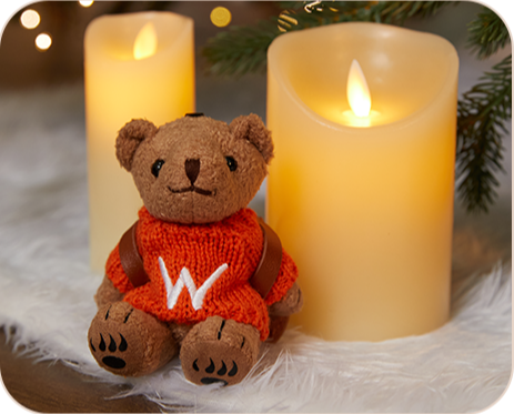 위드베어는 오렌지색 스웨터를 입고 있으며, 스웨터의 'W' 로고는 'With'와 'World Vision'을 상징합니다. 또한, 가방에 에어팟 프로 및 3세대 에어팟을 보관할 수 있도록 디자인되어 실용성을 더했습니다.