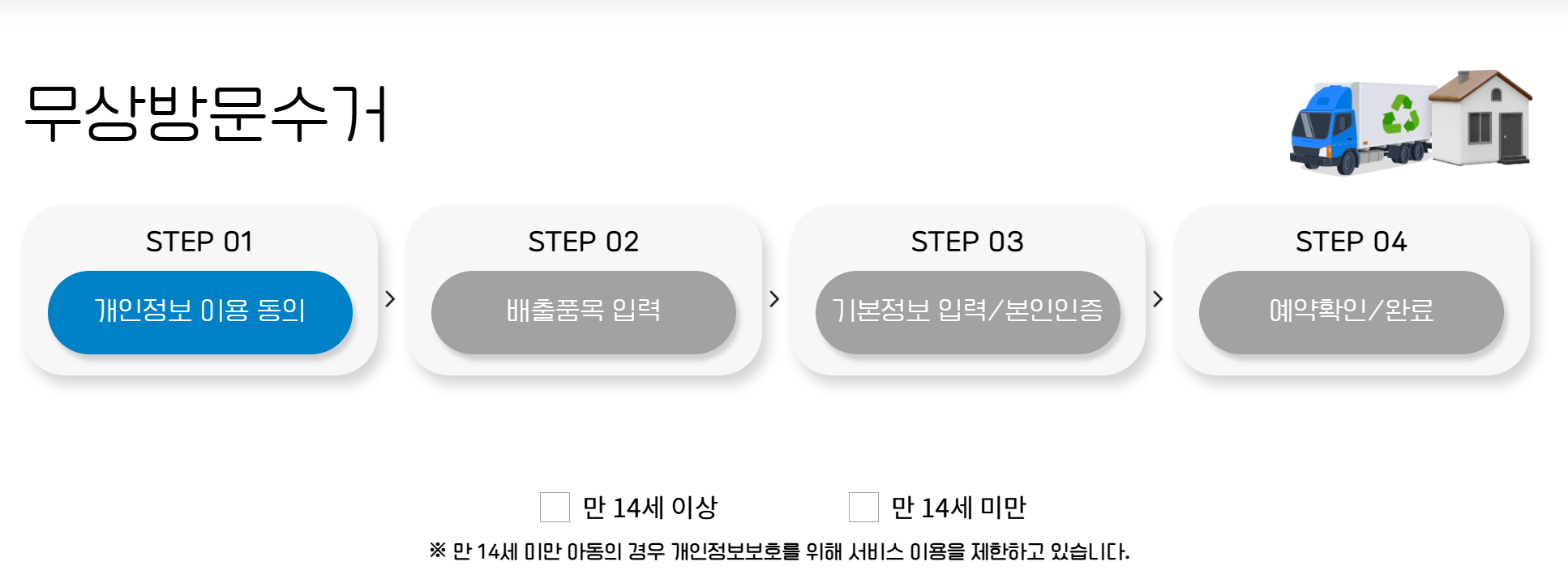 - 신청자가 예약한 품목에 대해 가정 내 방문 수거를 원칙으로 합니다.